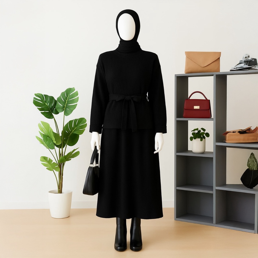 👗 سوت إسكيرت ساده كلوش بحزام – لمسة فخامة وأناقة ✨