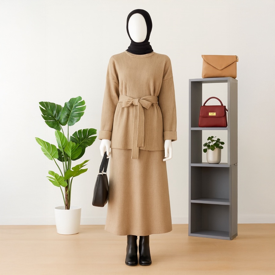 👗 سوت إسكيرت ساده كلوش بحزام – لمسة فخامة وأناقة ✨